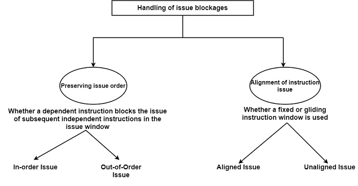 處理指令阻塞可以分為圖中所示的兩種型別。第一個方面稱為保持指令順序,它指定依賴指令是否會阻塞後續獨立指令在指令視窗中的發出。第二個方面是指令發出對齊。它決定是使用固定指令視窗還是滑動指令視窗。