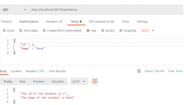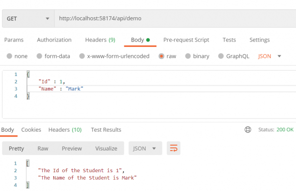 return Request.CreateResponse(HttpStatusCode.OK, $"The Sudent Id is