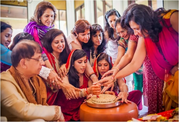 5. Santh:這個婚前儀式包括七個婦女將油倒在新娘頭髮分界線的中心。