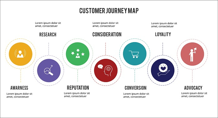 建立客戶旅程地圖(客戶與您的品牌互動情況的圖形記錄)的過程稱為客戶旅程地圖,也稱為使用者旅程地圖。企業可以使用此練習設身處地為客戶著想,並從他們的角度看待其運營情況。這使您可以瞭解更多資訊並解決常見的客戶問題區域。