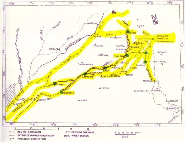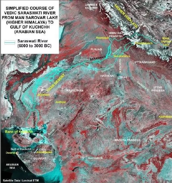 印度空間研究組織(ISRO)研究了印度西北部一些河流的古河道(河流殘餘),發現它們與薩拉斯瓦蒂河的河道有關。