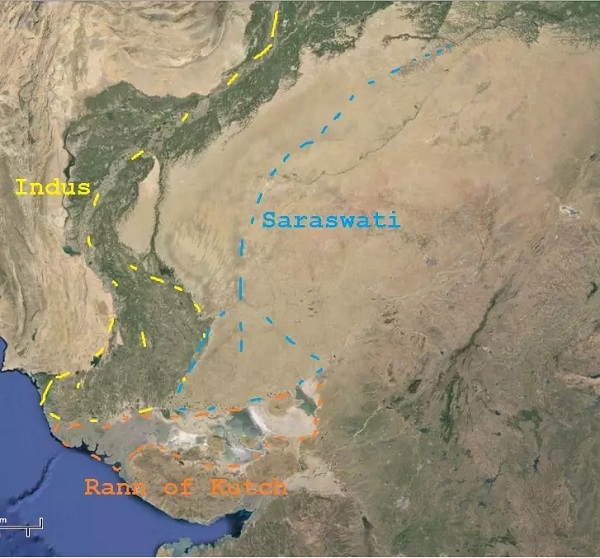 憑藉所有考古、水文地質調查和冰川學證據,發現了大量證據表明,當印度河谷文明蓬勃發展時,薩拉斯瓦蒂河確實存在,並且沿著主要的哈拉帕遺址(如拉賈斯坦邦的卡利班甘、哈里亞納邦的巴納瓦利和拉克希加里以及古吉拉特邦的德霍拉維拉和洛塔爾)流動。據估計,這條河流從北阿坎德邦附近的某個地方出發,穿過這些景觀,最終匯入古吉拉特邦卡奇大鹽沼的阿拉伯海。