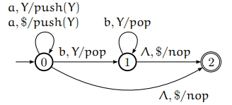 在第一個b出現時更改狀態,並開始為每個b從棧中彈出一個Y。