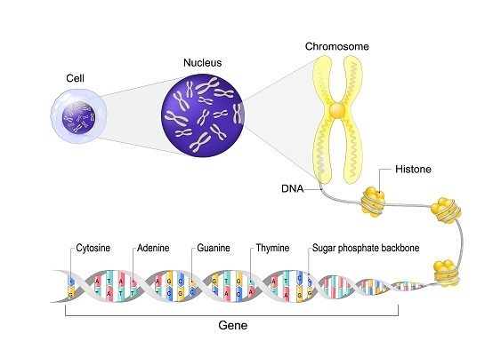 染色體是一種以 DNA 形式攜帶遺傳資訊的結構。DNA 是包含所有生物體發育、生長和功能指令的藍圖。染色體位於細胞核內,由纏繞在稱為組蛋白的蛋白質周圍的長而盤繞的 DNA 鏈組成。