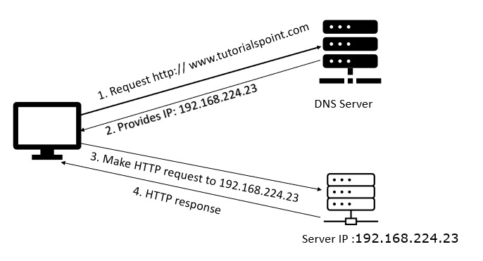 步驟2 - 現在,IP有點複雜(因為沒有人想寫192.168.224.23或一些隨機的IP來訪問Tutorials point),所以人們想出了域名的主意,它基本上儲存了對映到其名稱的IP地址。