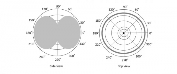 此半波偶極子的輻射方向圖在 H 平面內是全向的。這對於許多應用(例如行動通訊、無線電接收器等)是理想的。