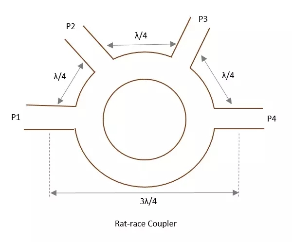 如果在埠1施加輸入功率,它將平均分成兩個埠,但對埠2為順時針方向,對埠4為逆時針方向。埠3絕對沒有輸出。