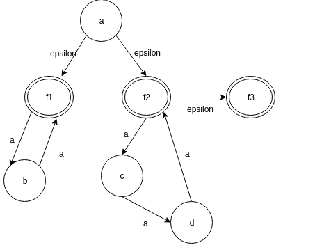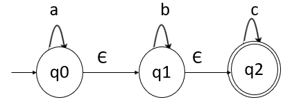 查詢具有空值的以下非確定有限自動機 (NFA) 的 ε 閉包。