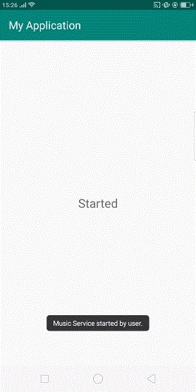 在上面的結果中,服務已啟動,現在點選TextView,它將停止音樂服務,如下所示: