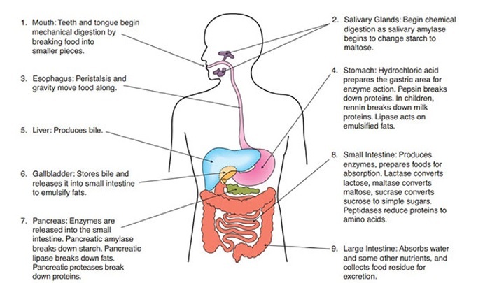 人體中的同化作用是一個複雜的過程。它從食物的消化開始。因此,為了理解營養物質同化作用的概念,我們需要了解消化過程。食物從口腔攝取,在那裡較大的食物顆粒被轉化並同化為較小的食物顆粒。