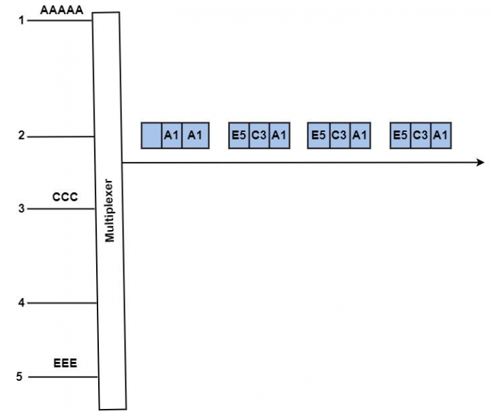 在輸入過程中,多路複用器過濾輸入緩衝區並累積記錄,直到幀填滿。然後傳輸該幀。在接收端,反多路複用器獲取幀並將資料迴圈到合適的緩衝區。
