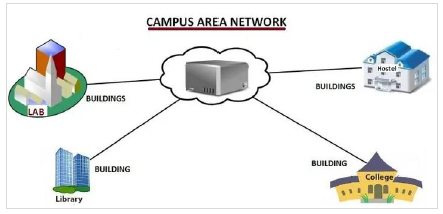 **例如** - 校園中不同的建築物透過校園區域網 (CAN) 連線在一起,它們有助於互連部門、圖書館和計算機實驗室。