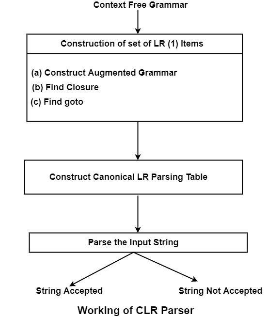 CLR 定義規範前瞻。CLR 解析使用規範的 LR(1) 專案集合來構建 CLR(1) 解析表。與 SLR(1) 解析相比,CLR(1) 解析表具有更多狀態。在 CLR(1) 中,它只能在先行符號中定位歸約節點。