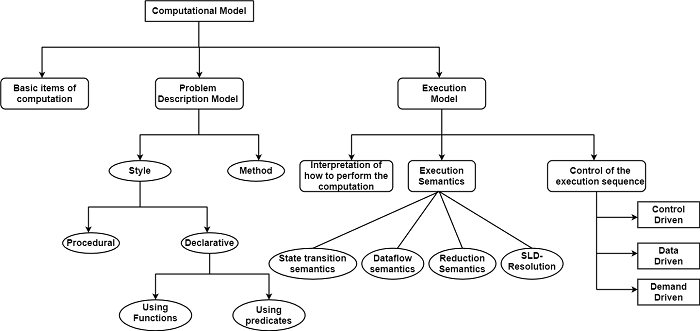 **執行模型** - 計算模型的最後一個元素是執行模型。第一個組成部分宣告計算的解釋,這與問題描述方法密切相關。問題描述方法的選擇和計算的解釋相互決定並相互假定。