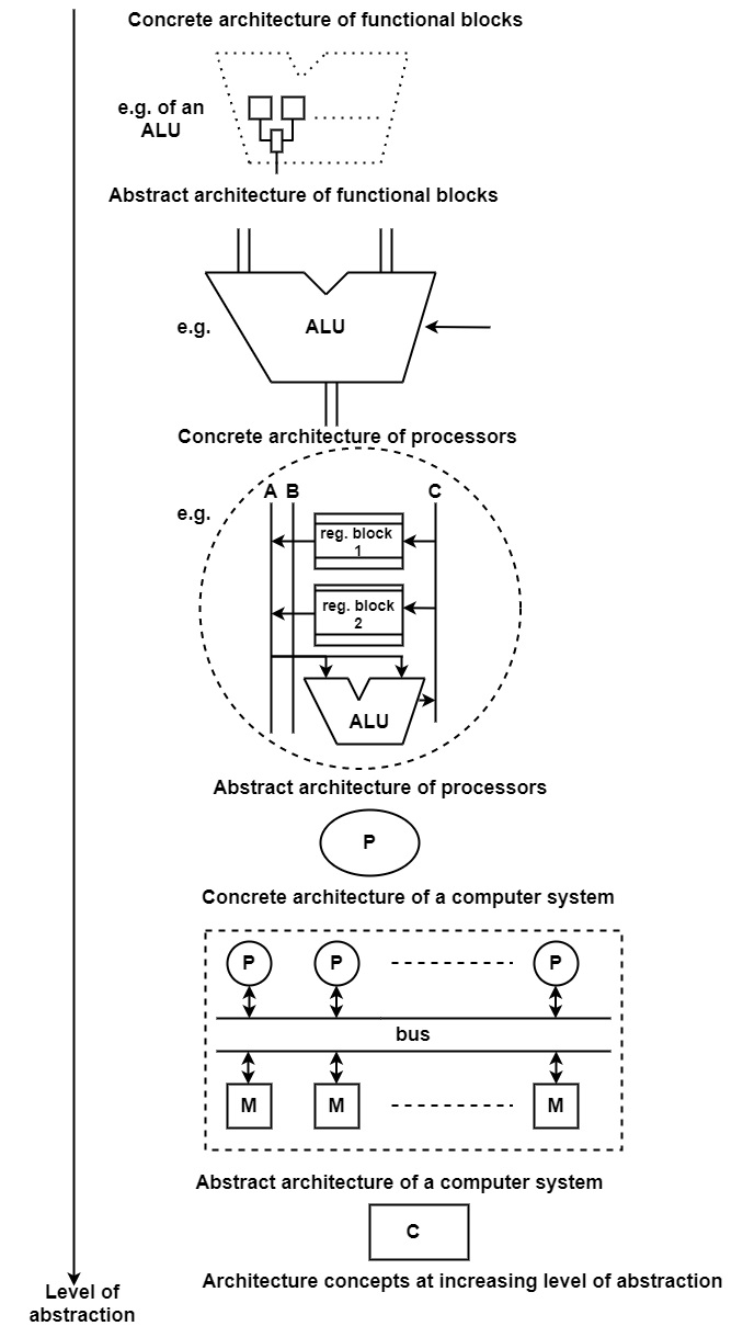 因此,後續級別——微機級別上的具體和抽象體系結構、處理器級別上的具體和抽象體系結構以及系統級別上的具體和抽象體系結構——是抽象程度不斷提高的級別。