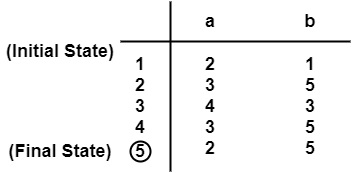 確定性意味著對於每個輸入,自動機只有一個狀態可以從其當前狀態轉換。在確定性有限自動機中,磁頭只能沿一個方向移動以掃描輸入磁帶符號。但在雙向有限自動機的情況下,在掃描輸入符號時,磁帶的磁頭可以從其當前位置向右或向左移動。