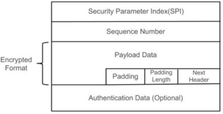 封裝安全載荷 (ESP) 在基於 IPSec 的所有加密服務中提供有效載荷的完整性(而不是 IP 標頭),以及使用加密的機密性和身份驗證。強烈建議不要使用未經身份驗證的加密,因為它不安全。