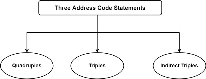這種三地址碼錶示包含三個 (3) 個欄位,即一個用於運算子,兩個用於引數(即引數 1 和引數 2)