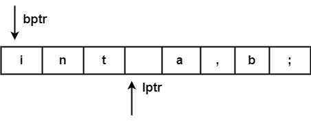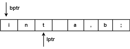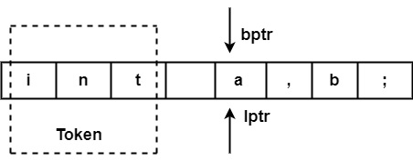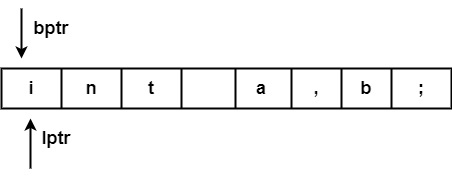 處理完標記 ("int") 後,兩個指標將設定為下一個標記 ('a'),並且此過程將對整個程式重複。