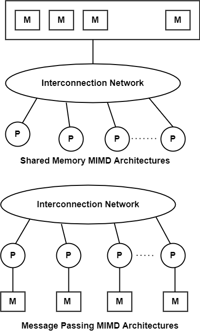 MIMD代表多指令多資料流。它包括由多個處理器和多個記憶體模組組成的並行體系結構,這些模組透過某個互連網路連線。它們分為兩種主要型別,包括共享記憶體或訊息傳遞。