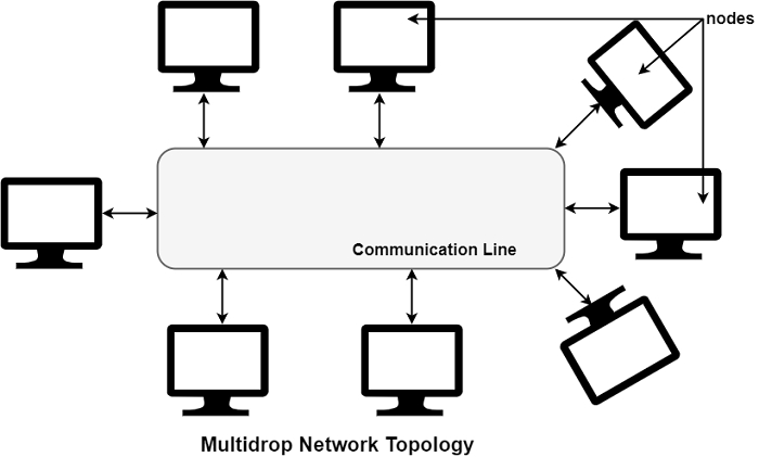 在這種拓撲結構中,全互連網路受到使用單個電纜連線所有節點的限制。因此,在這種拓撲結構中,只有一條線路由所有節點共享。每當任何網路傳輸訊息時,它都會將傳送方地址和目標地址或接收方地址作為標籤。