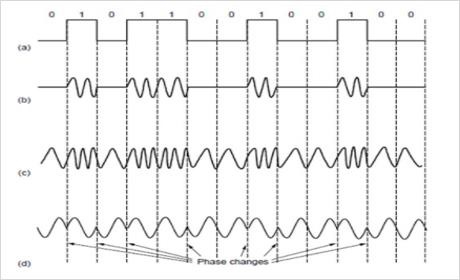 步驟 10 - 在 PSK(相移鍵控)中,載波波在每個符號週期系統地移動 0 或 180 度。因為有兩個相位稱為二進位制相移鍵控。
