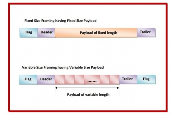 有效載荷欄位大小可以是固定的,也可以是可變的。如果有效載荷欄位大小是固定的,那麼幀的大小就變為固定。固定大小的幀不需要任何結束標誌,因為幀長度充當幀的分隔符。對於可變長度的有效載荷,一種模式被用作分隔符來確定幀的大小。或者,保留一個包含幀大小的長度欄位。