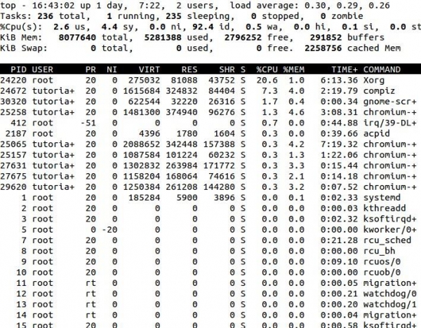 如果開啟**top**(在終端中,鍵入**top**並按 Enter 鍵),則 PID 列會列出當前載入到記憶體中的所有程序的程序 ID,無論其狀態如何(睡眠、殭屍等)。守護程序(系統程序)和使用者程序都有其自己的程序 ID。PID 並不總是按數字順序分配,因此看到看似隨機的數字選擇是正常的。