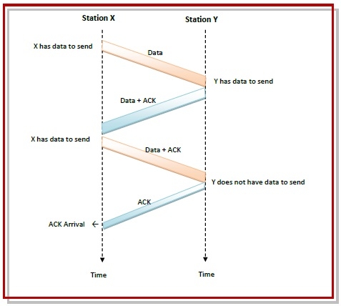 如果站點X同時有資料和確認資訊要傳送,則它傳送一個數據幀,其中ack欄位包含要確認的幀的序列號。
