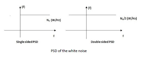 無線通訊系統中最常用的噪聲模型是“白”噪聲模型。白噪聲的 PSD 曲線在頻率範圍內是平坦的。因此,白噪聲的 PSD 是均勻的,並且與訊號頻率分量無關。白噪聲 PSD 在 PSD 圖中表示為平行於頻率軸的直線。