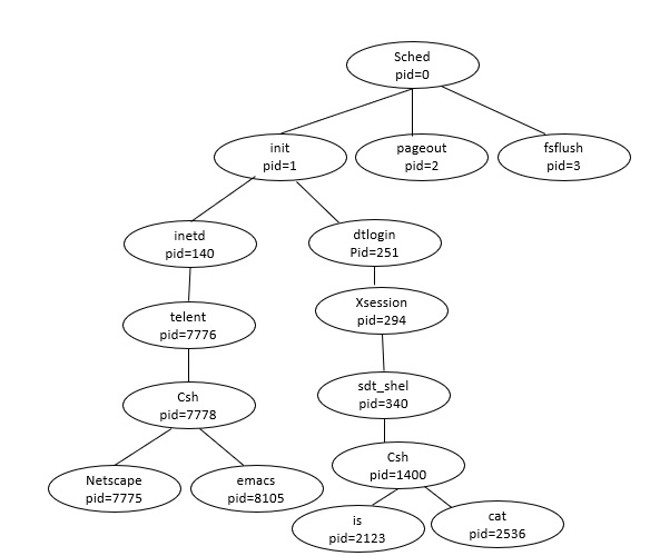 讓我們考慮一個典型 Solaris 系統上的程序樹,如下所示: