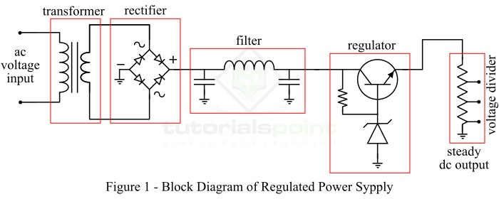 穩壓電源確保即使輸入電源發生變化,負載端的輸出功率也應保持恆定。穩壓電源接收交流電作為輸入,併產生恆定的直流電作為輸出。穩壓電源基本上是一個嵌入式電路,由多個模組組成。