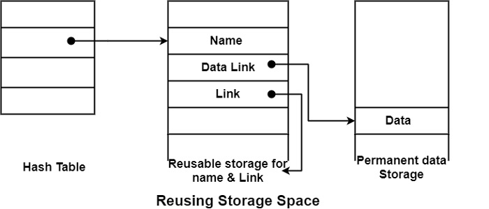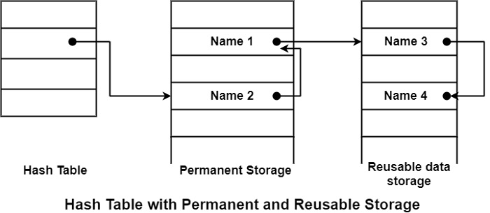 從永久表到可重用表的所有指標都設定為 null,並且雜湊表將直接指向可重用表。