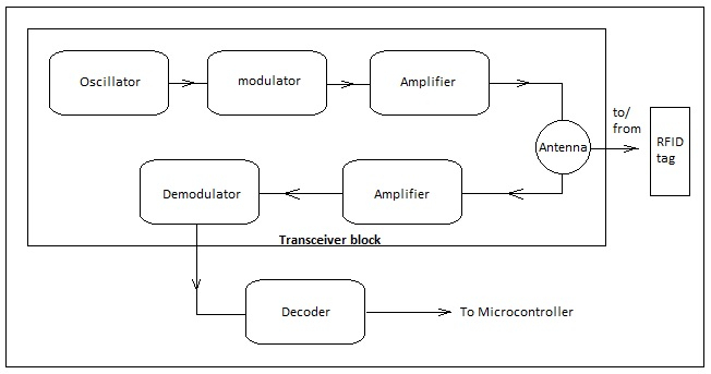 RFID將資訊從RFID標籤傳輸到RFID閱讀器。也就是說,資料透過包含RFID標籤、天線、RFID閱讀器和收發器的系統進行通訊。