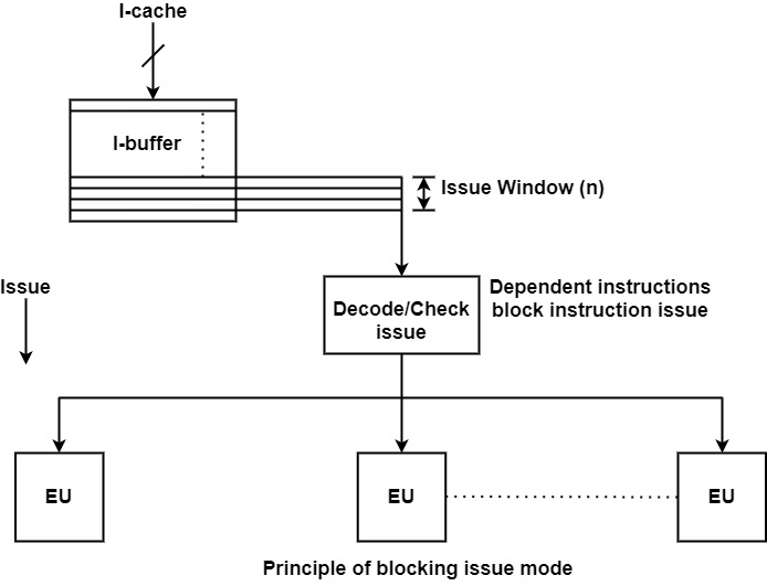 特定的資源約束可能會限制處理器在一個週期內發出的指令數量少於其指令發出率。存在兩種資源約束,例如目標擱置緩衝區、重新命名暫存器檔案或 ROB 中缺少空閒條目。資料路徑限制並限制在一個週期內可以傳輸到分配的擱置緩衝區的指令數量。在發生指令發出阻塞的情況下,使用擱置的處理器通常採用順序發出、對齊發出等。