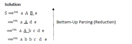 示例 1 - 對給定字串和語法執行自底向上分析,即顯示以下語法中字串 abbcde 的規約