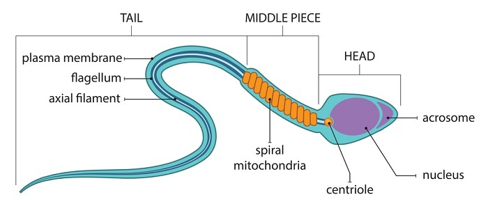精子是微小的細胞,長度只有幾微米。它們由三個主要部分組成:頭部、中間段和尾部。