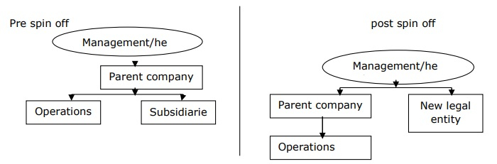這個新的子公司部門從其母公司獲得人力、技術、產品線,並作為回報交換預定的現金。母公司股東的股份不需要出讓他們的股票以換取子公司部門的股票。