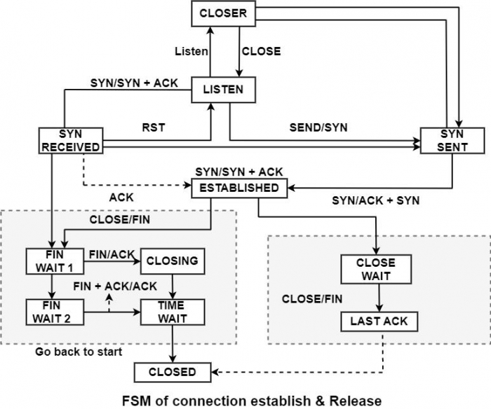 TCP連線是全雙工連線。為了理解連線釋放,我們可以將其視為一對單工連線。然後,我們可以想象每個單工連線都是獨立釋放的。釋放TCP連線是對稱的。任何埠都可以傳送帶有FIN位的TCP段,這意味著當FIN在該方向被確認時,它沒有更多資訊要傳送,該方向將關閉。但是,資料仍然可以繼續在另一個方向持續流動。