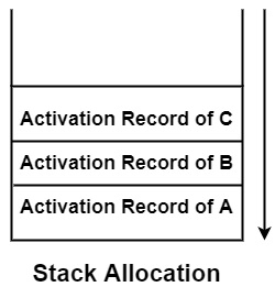 如果過程 A 呼叫 B,然後 B 呼叫 C,則棧分配將是