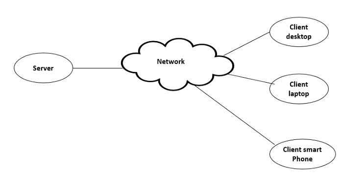 基本上,在網際網路上,使用者可以使用此技術,並且網路用於連線伺服器和客戶端。因此,客戶端和伺服器相互連線以進行客戶端-伺服器計算。