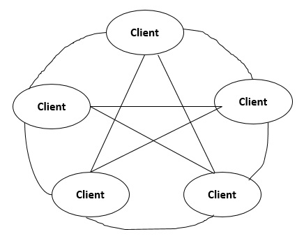 在對等計算中,節點首先加入網路,並且許多節點直接連線到網路,因此每個節點都與所有其他節點直接連線,這種型別的計算稱為對等計算。