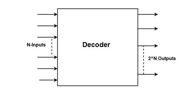 解碼器是一種可以將數字訊號轉換為模擬訊號的電子裝置。它啟用單個輸入線並建立多個輸出線。解碼器用於連線兩個裝置之間的多個通訊專案。解碼器啟用 N 個輸入並建立 2 的 N 次方個輸出。例如,如果它可以提供 2 個輸入,則可以使用 4x2 解碼器產生 4 個輸出。