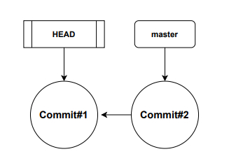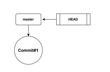 我們可以將 HEAD 從第一次提交分離,如下圖所示。master 指向最後一次提交,但我們將HEAD移回到第一次提交。在 Git 中移動 HEAD 很容易。