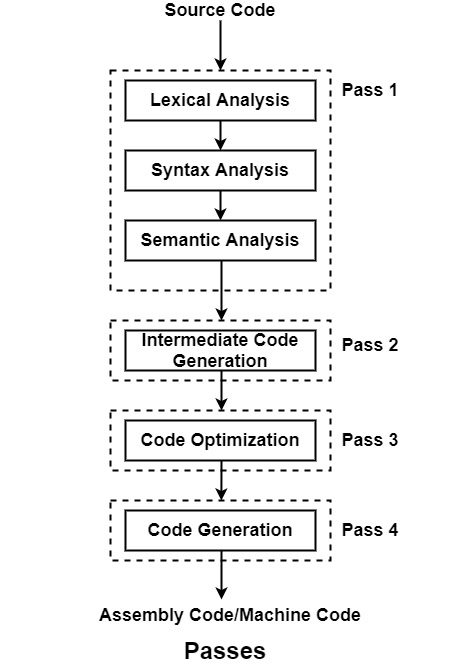 多遍編譯器可以多次處理程式的原始碼。在第一遍中,編譯器可以讀取原始碼,掃描它,提取標記並將結果儲存到輸出檔案中。