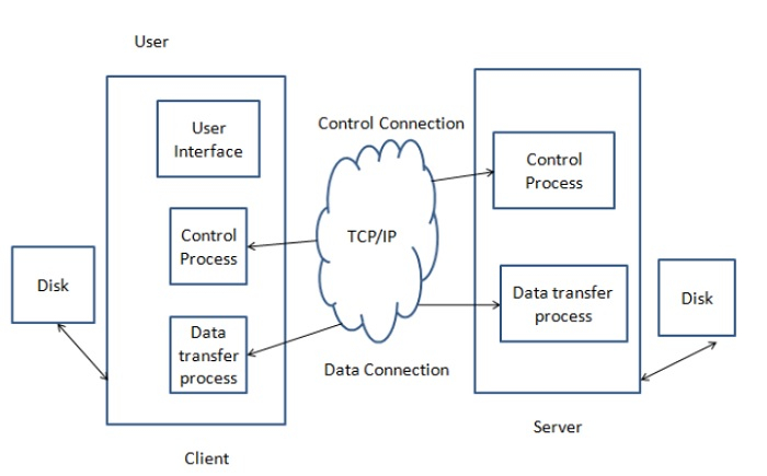 當客戶端和伺服器之間啟動 FTP 會話時,客戶端會與伺服器端建立控制 TCP 連線。客戶端透過此連線傳送控制資訊。伺服器收到此資訊後,會向客戶端發起資料連線。一次只能透過一個數據連線傳送一個檔案。FTP 必須在整個會話過程中維護其使用者資訊。