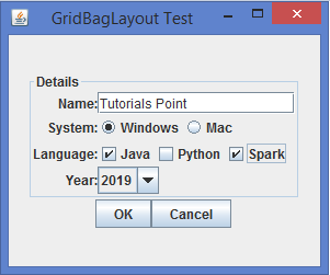 JFrame frame = new JFrame("GridBagLayout Test");