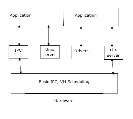 在微核心中,使用者服務和核心服務儲存在不同的地址空間中。使用者服務放在使用者地址空間中。核心服務放在核心服務中。因此,核心的大小和作業系統的大小被最小化或減少。