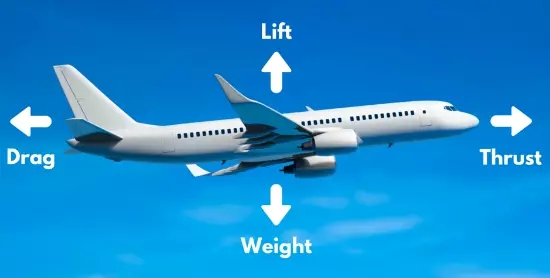 由於F(升力)大於F(重力),“F”代表力,飛機向上移動。機翼安裝有各種控制面,如襟翼、縫翼、副翼等,它們可以改變翼型的形狀,從而幫助改變升力。達到所需高度後,調整機翼形狀並保持飛機速度,使飛機的升力和重量平衡,從而能夠在恆定高度巡航。