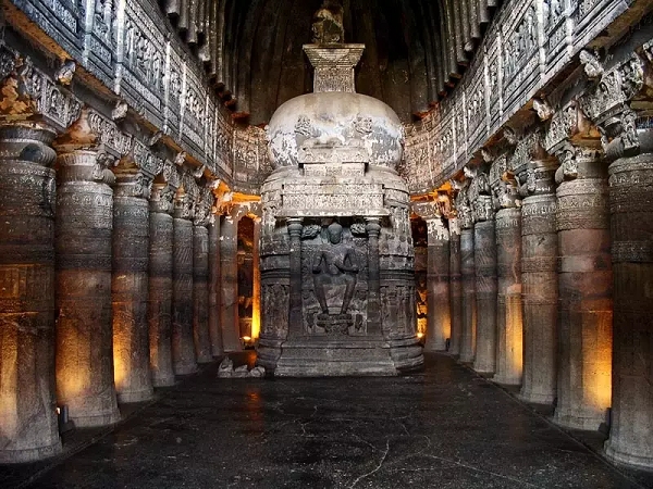 阿旃陀石窟建築的獨特精髓體現在錯綜複雜的雕刻、屋頂、柱子、佛塔、集會大廳等方面。阿旃陀共有29個石窟,其中禮拜堂和寺院是兩種主要型別。禮拜堂供奉佛塔,是禮拜中心,而寺院則作為修道院,供學習和研究之用。